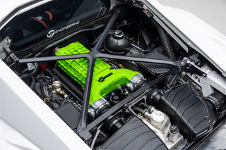 Unleash the full potential of your Lamborghini Huracan with the VF Engineering VF8XX Supercharger System, a pinnacle of automotive engineering designed to elevate your supercar’s performance to extraordinary new heights. This system is not just an upgrade; it’s a transformation that turns your Huracan into a powerhouse, ready to dominate both canyon roads and racetracks alike. At the core of the VF8XX Supercharger System is the state-of-the-art 6th generation Magnuson TVS2300 roots-style blower. This cutting-edge supercharger is expertly paired with a sophisticated air-to-water intercooler, ensuring optimal cooling efficiency even in the most demanding driving conditions. Whether you’re navigating tight corners or pushing your Huracan to its limits on the track, this system guarantees consistent, relentless performance. One of the standout features of the VF8XX is its user-friendly, plug-and-play installation process. Designed with both performance enthusiasts and professional technicians in mind, the system integrates seamlessly into your Huracan’s existing setup, allowing you to quickly and efficiently enhance your car’s capabilities without the need for extensive modifications.