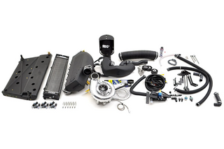 This setup maintains alignment with the original serpentine belt, utilizing an OEM belt configuration, and retains full functionality of the OEM active-spring belt tensioner to prevent slippage without requiring manual adjustments. The system features an advanced water-cooled design, ensuring consistent performance by effectively regulating operating temperatures, making it ideal for both spirited drives and demanding track use. Custom-molded polypropylene plastic air ducts are seamlessly integrated for a factory-like appearance and precise fit. The inclusion of a Bosch boost overrun system ensures smooth off-throttle transitions